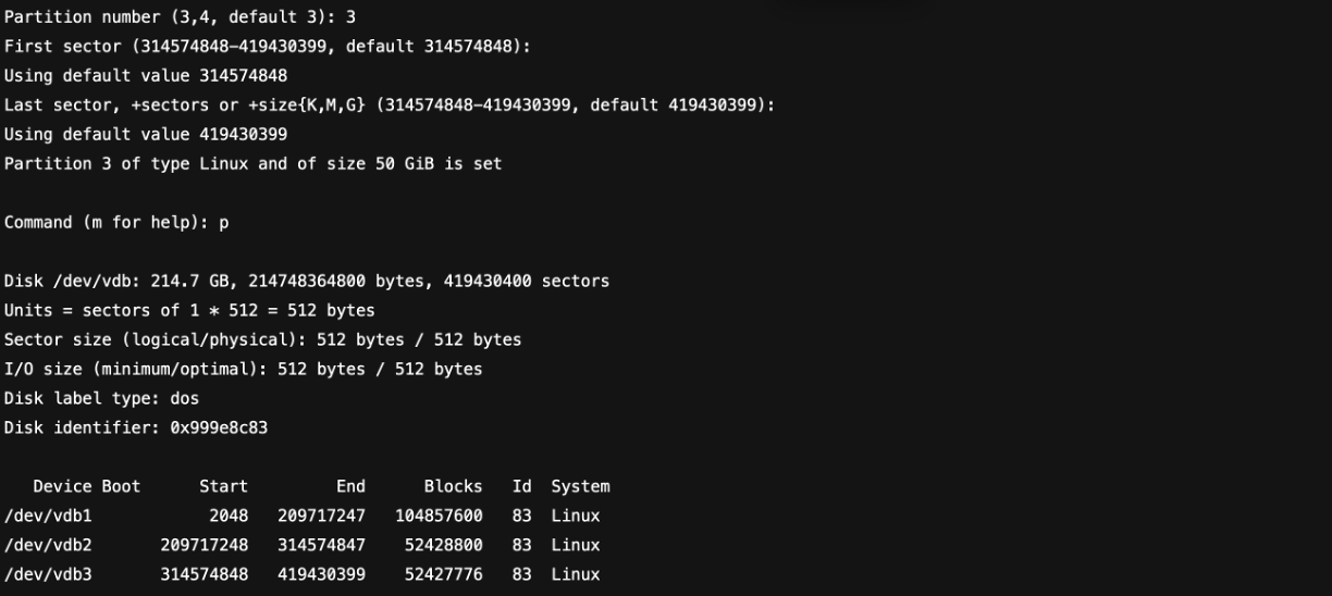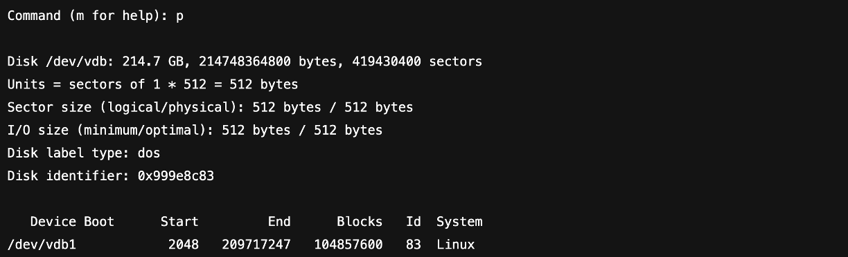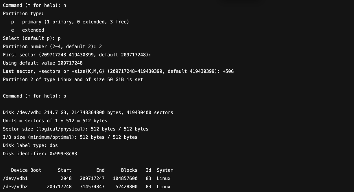 fdisk /dev/vdb