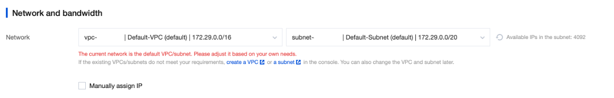 VPC 설정을 따로 하지 않아도 초기 CVM 구입 시 default VPC로 설정이 가능하다.