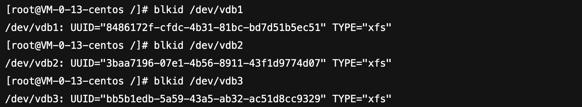 mkfs.xfs /dev/vdb3