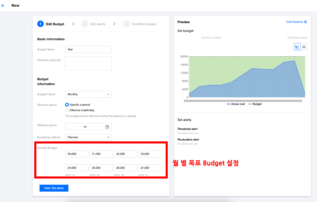 개별 인스턴스에 대한 사용량을 정해두면 아래와 같이 목표 사용량이 그래프로 제시된다.