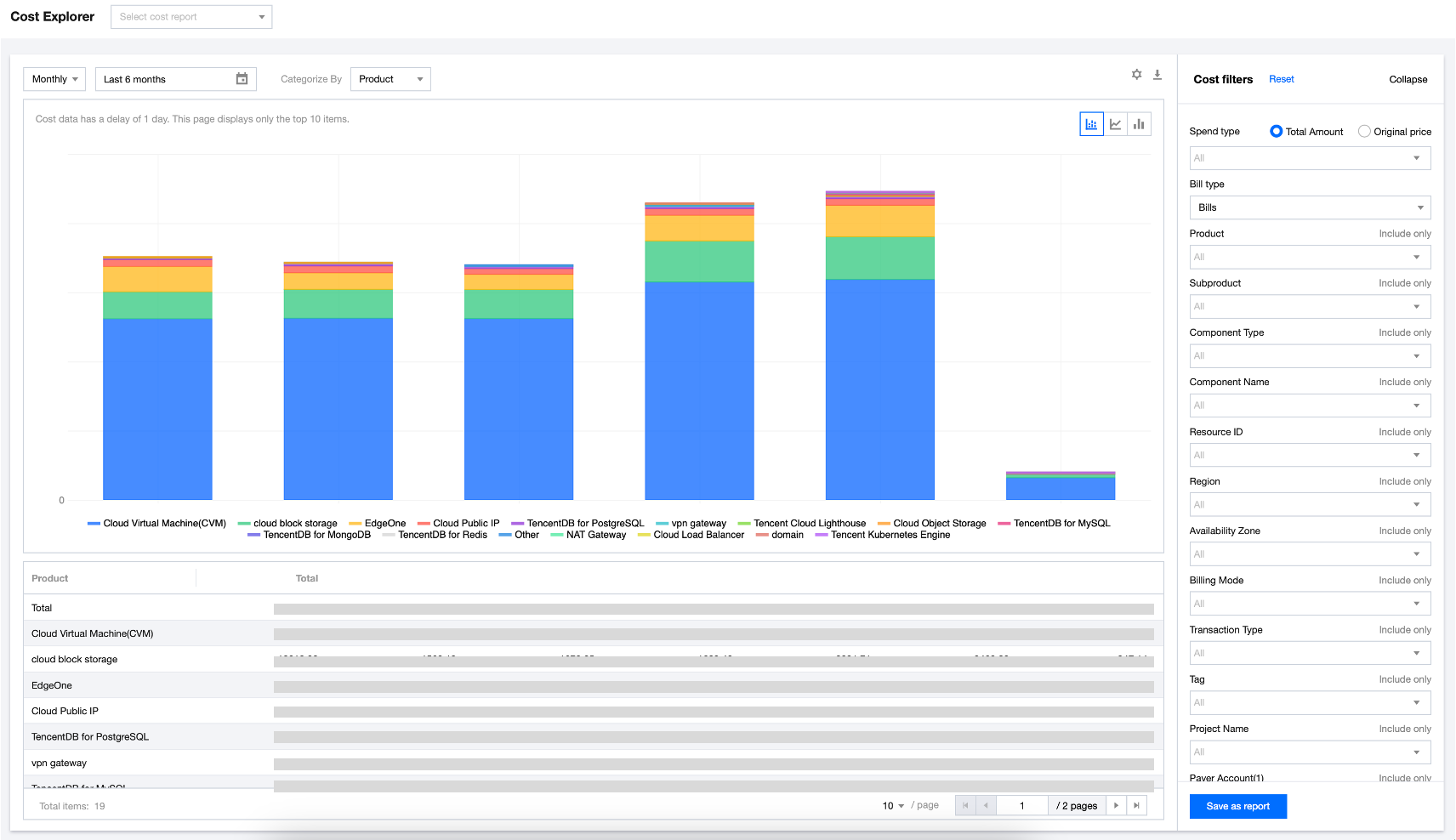 Tencent Cloud Console → Billing Center → Cost explorer 에 접속한다.